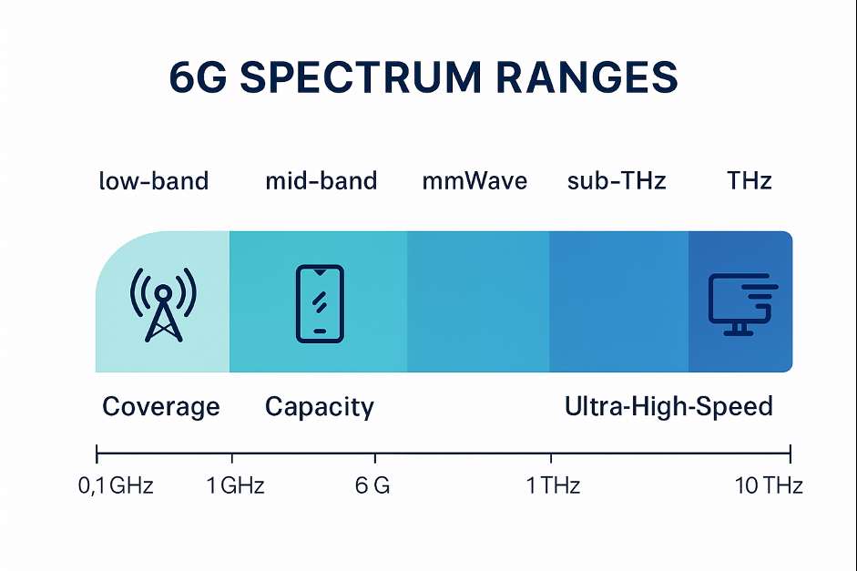 Rather than depending on any single band, 6G will likely employ a layered spectrum approach: low bands for resilient, wide-area coverage; mid bands for urban macro deployment and balanced rollout; sub-THz for immersive services and fixed wireless; and THz for sensing, cognition, and backhaul. All of these layers will be dynamically orchestrated, likely through AI and real-time feedback systems, to create a seamless connectivity experience across diverse environments and use cases.